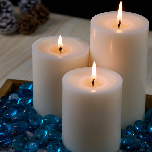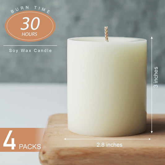 TMBDDD Pillar Candles - 2.8x3 inch | 30 Hours Burning, 4 Count - Ivory Unscented Pillar Candles - Dripless Candle Pillar Perfect for Wedding, Parties, Spas, Home Gatherings and Dinner
